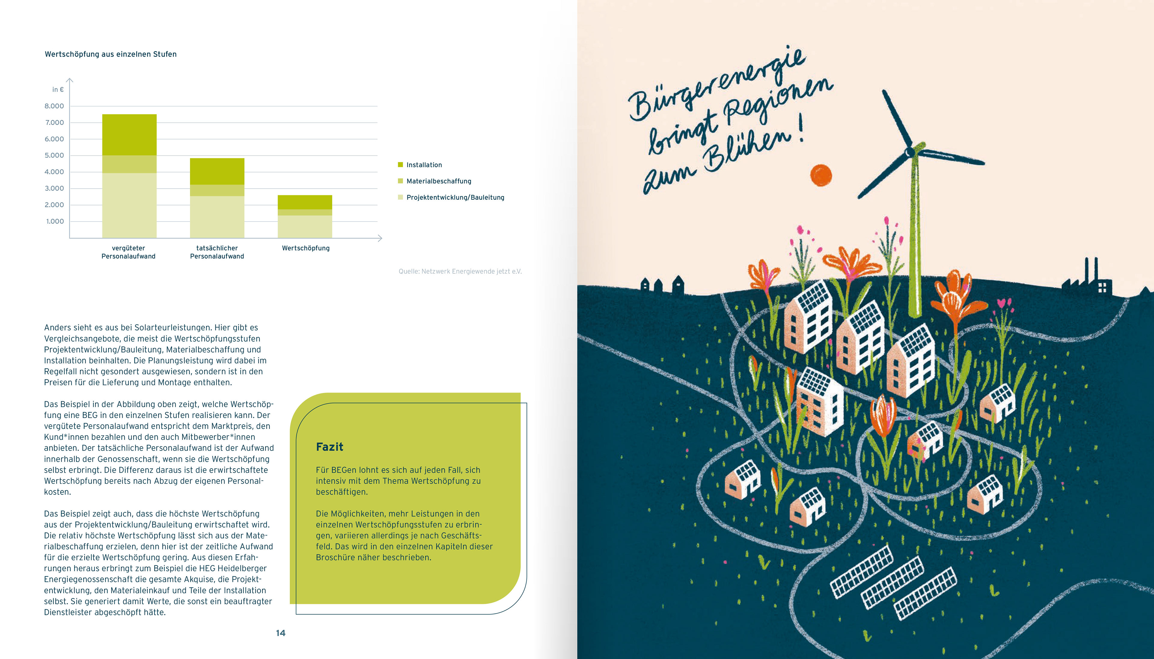 Illustrated brochure on value creation in the context of citizen energy organizations. Bündnis Bürgerenergie e.V., Berlin