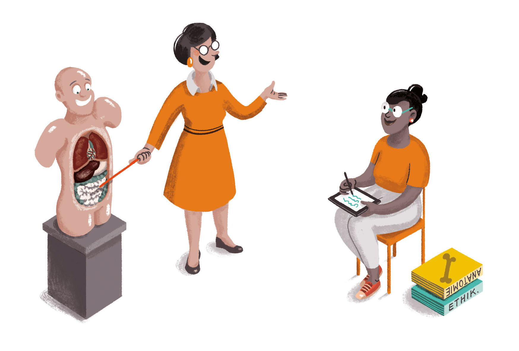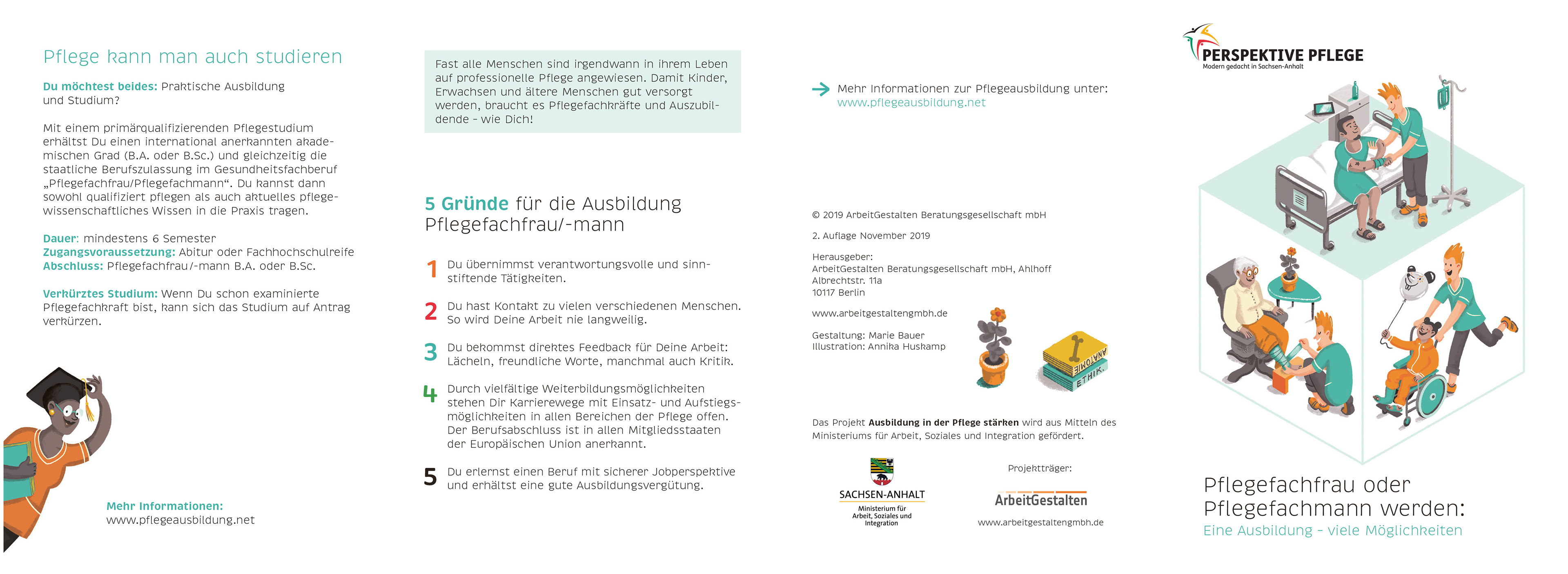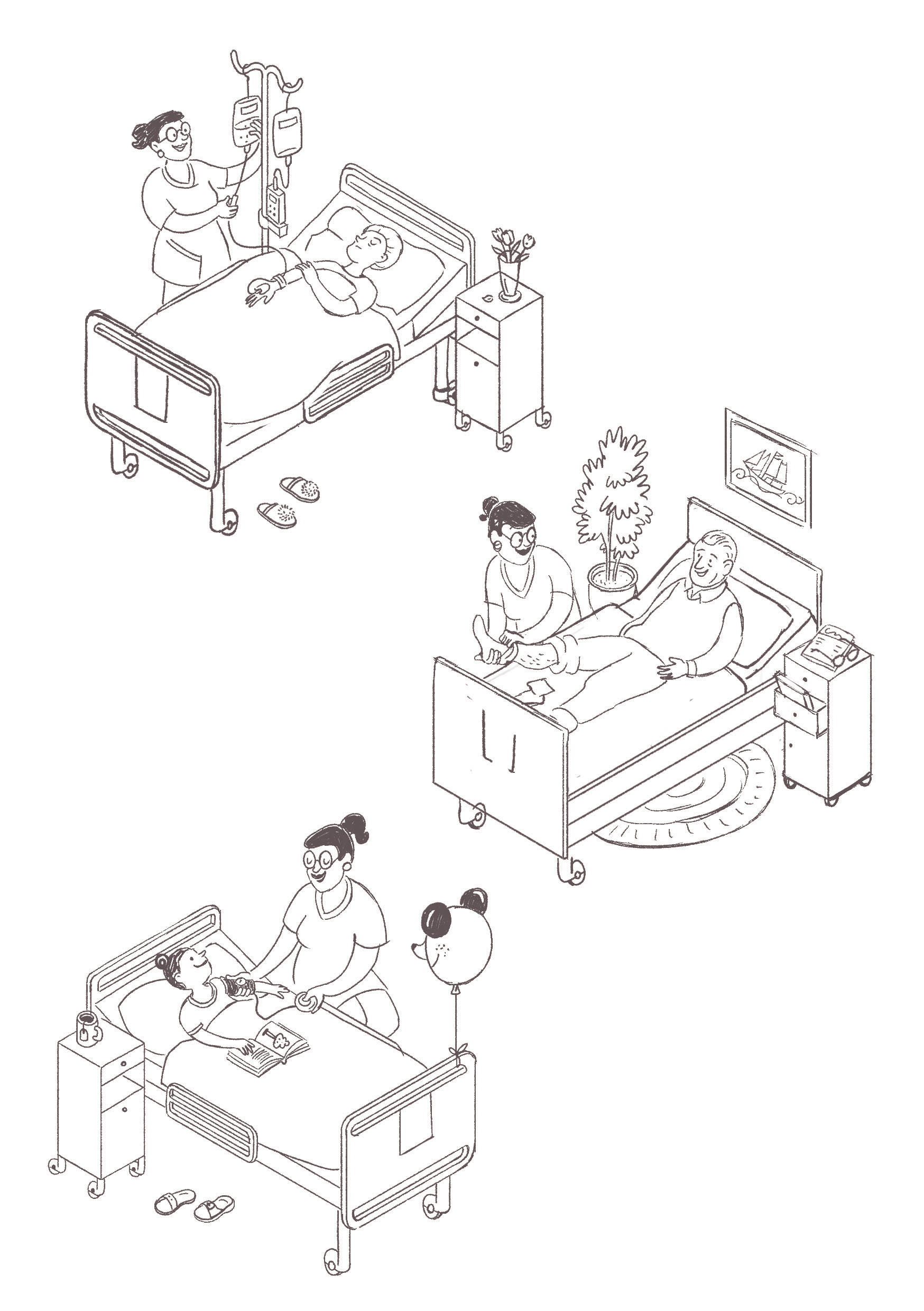 Illustrations for a flyer that gives an overview of job perspectives for people that have absolved a professional training as a care giver.