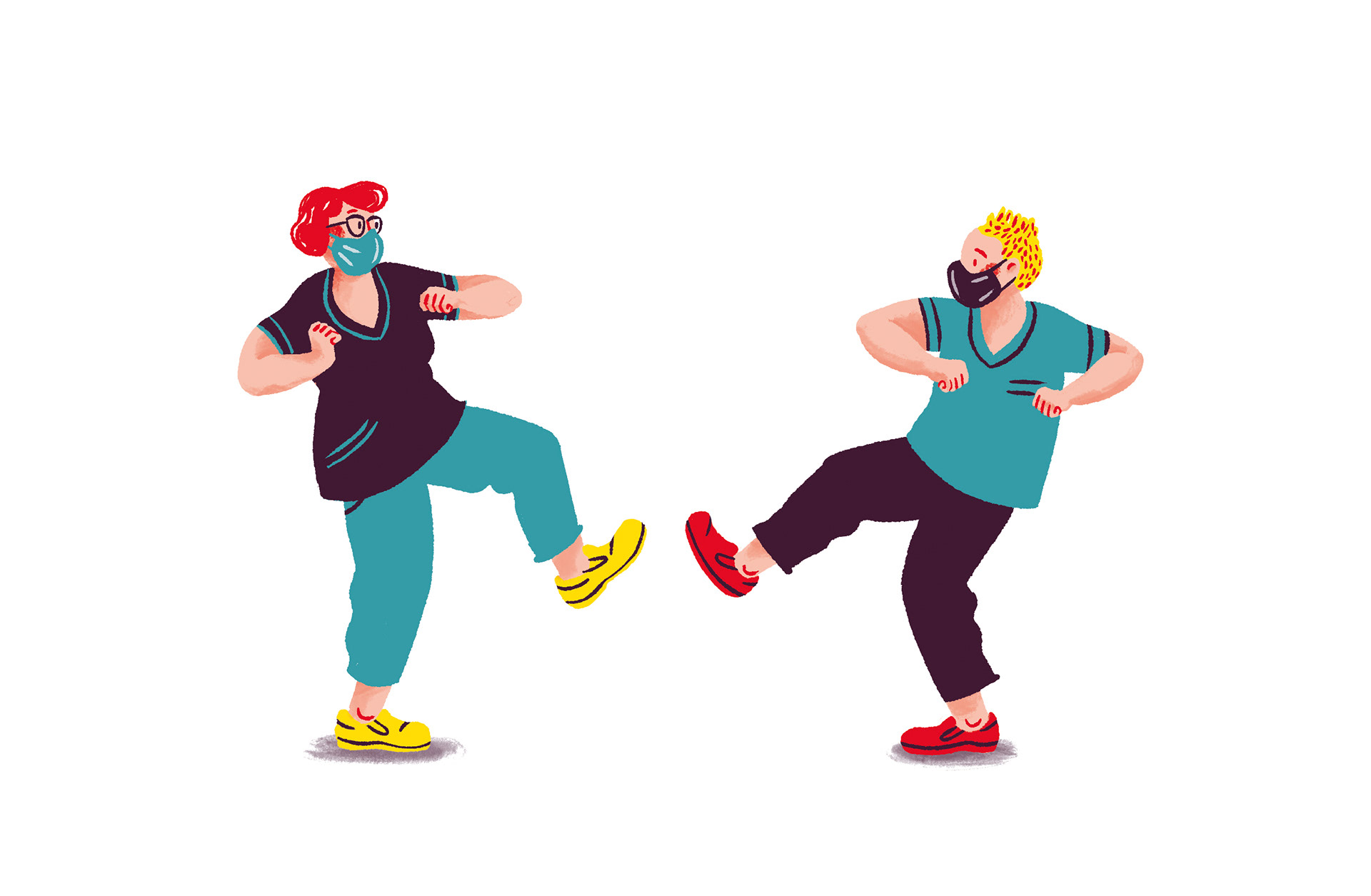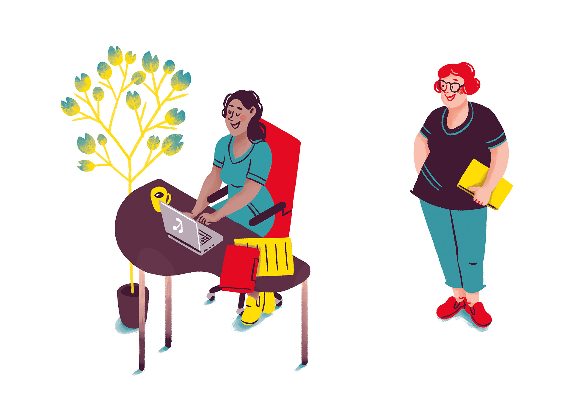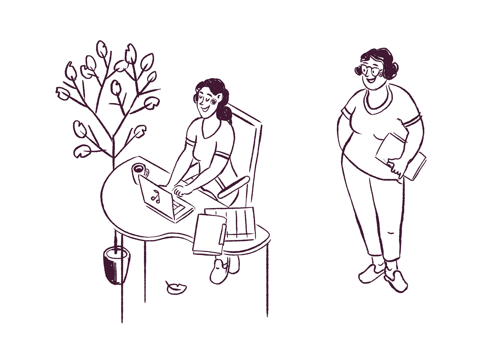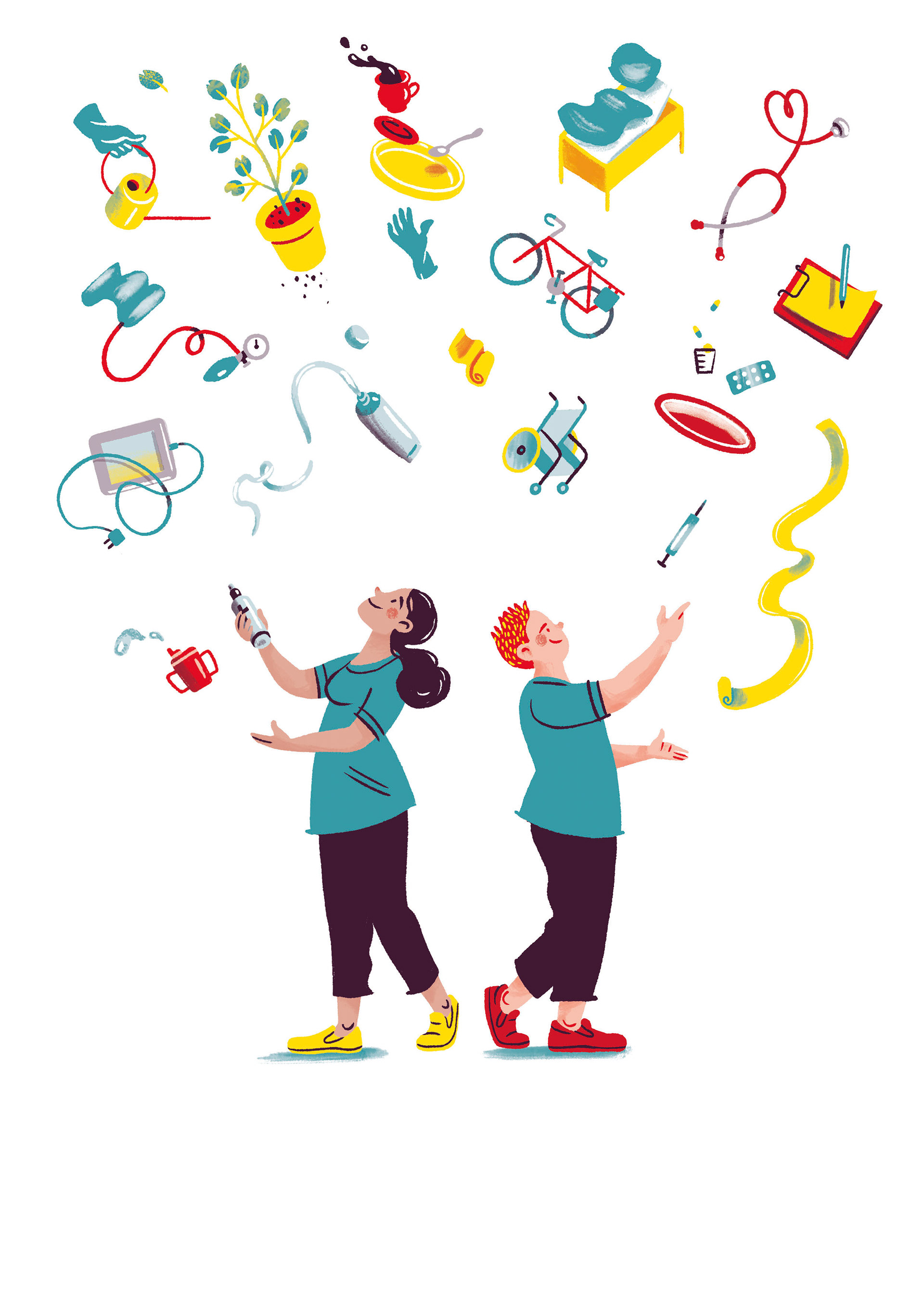Illustrations for a manual that talks about education possibilities in caregiving. Arbeit Gestalten GmbH / Berliner Bündnis für Pflege