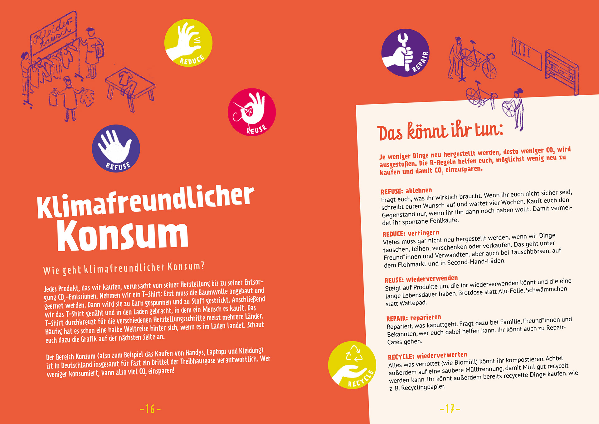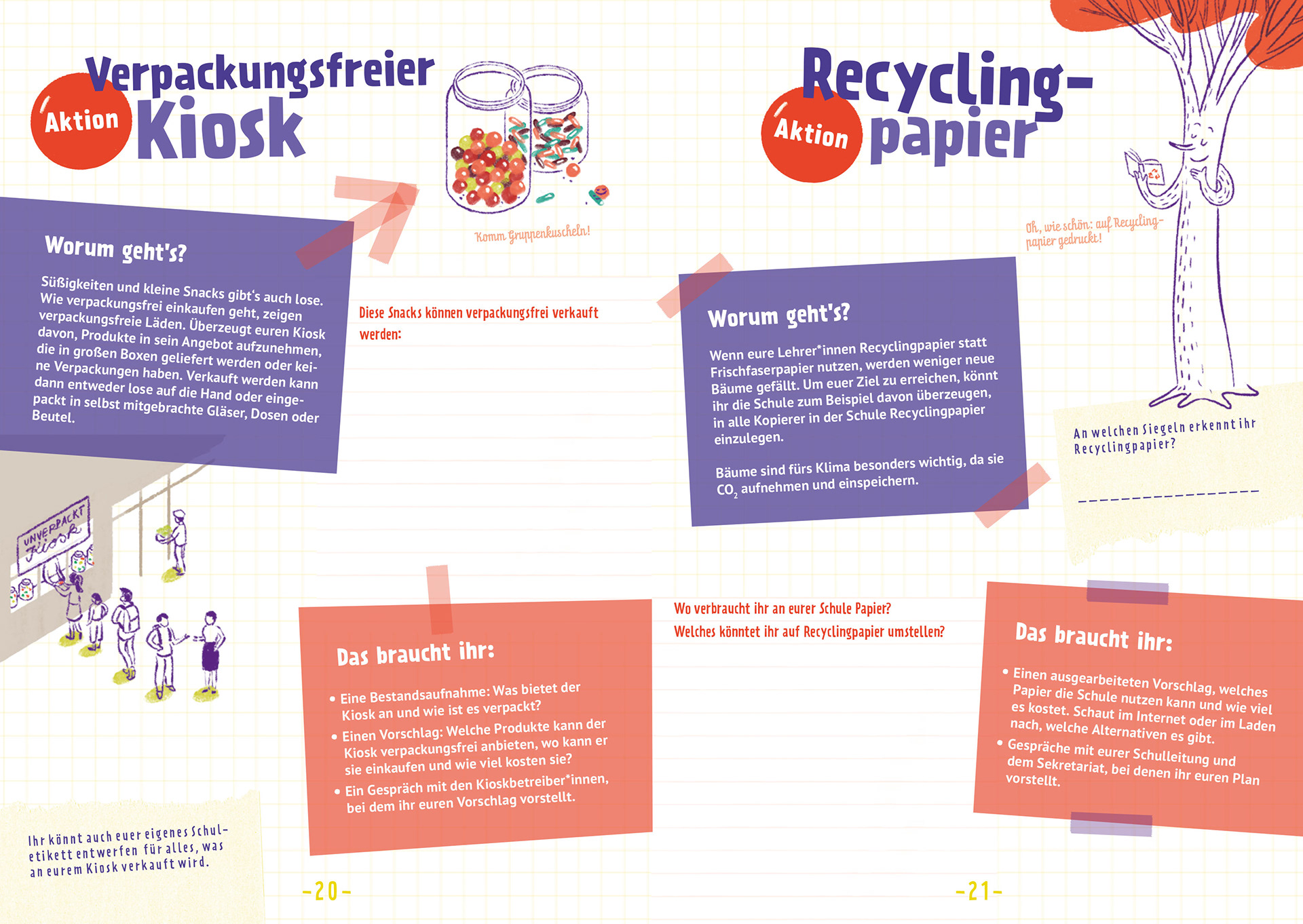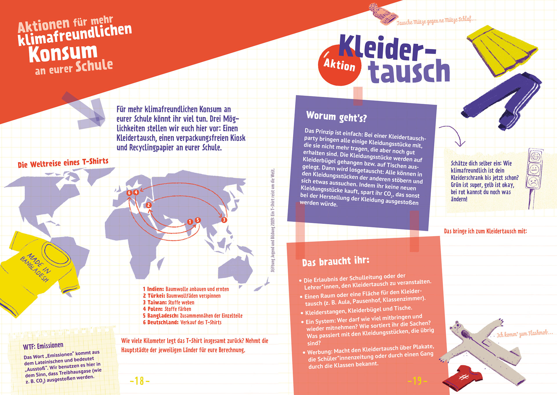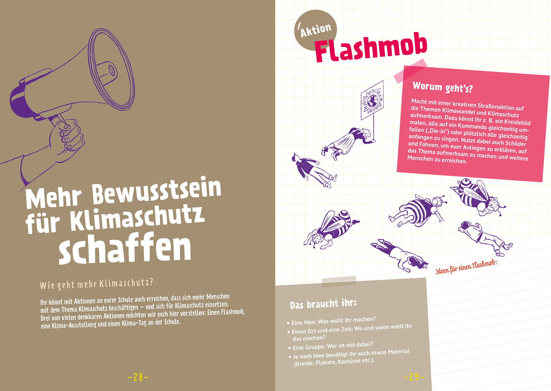 Illustration of a leaflet to be used in schools. Ideas for climate change projects.