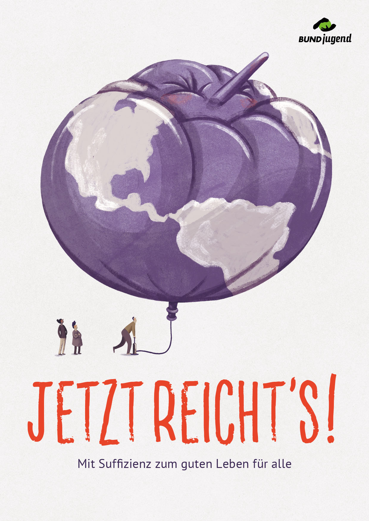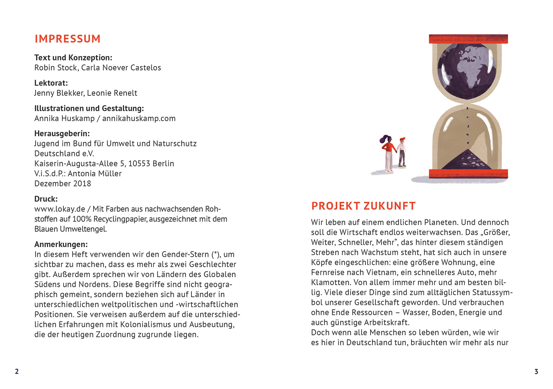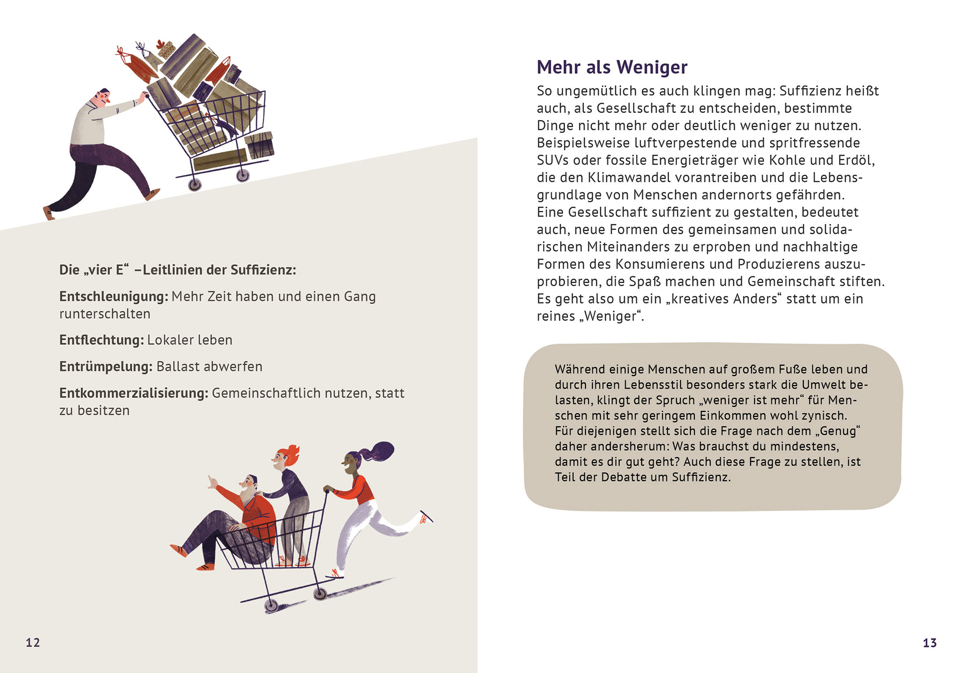 Design and illustration for a brochure talking about sufficiency and degrowth:
