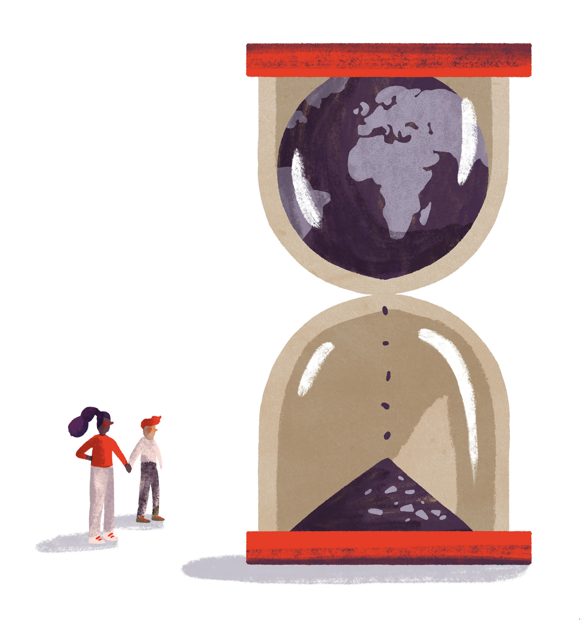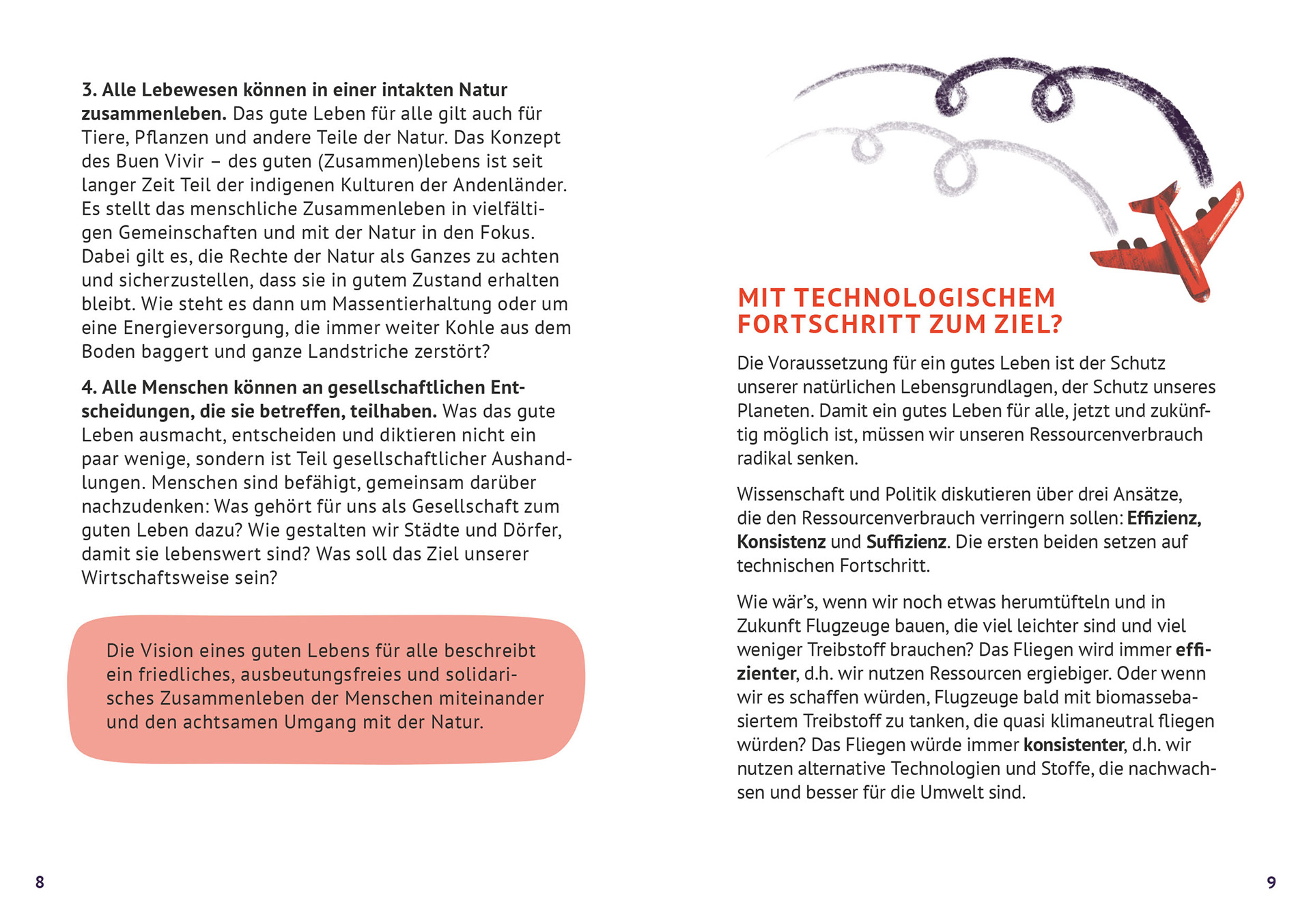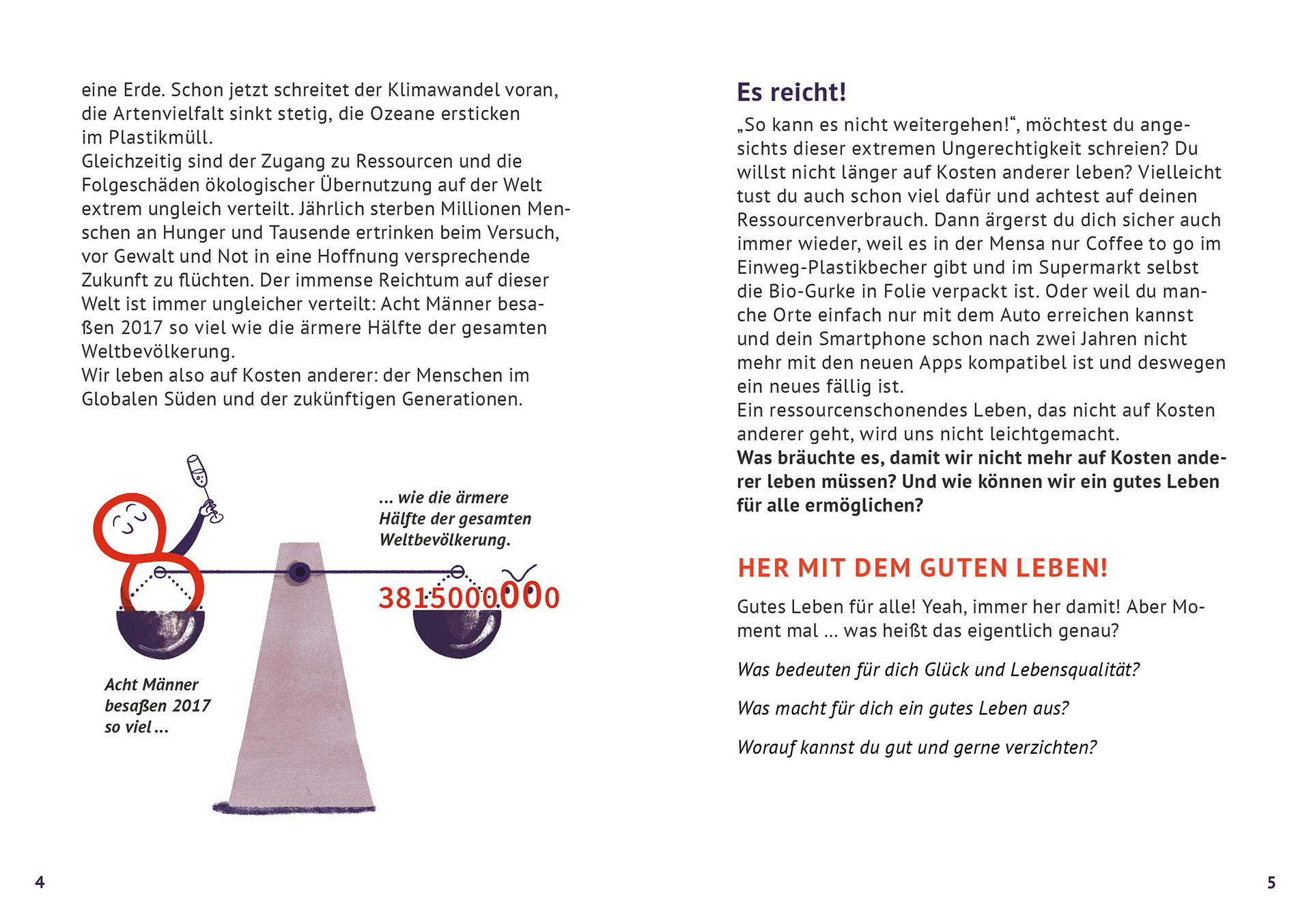 Design and illustration for a brochure talking about sufficiency and degrowth: