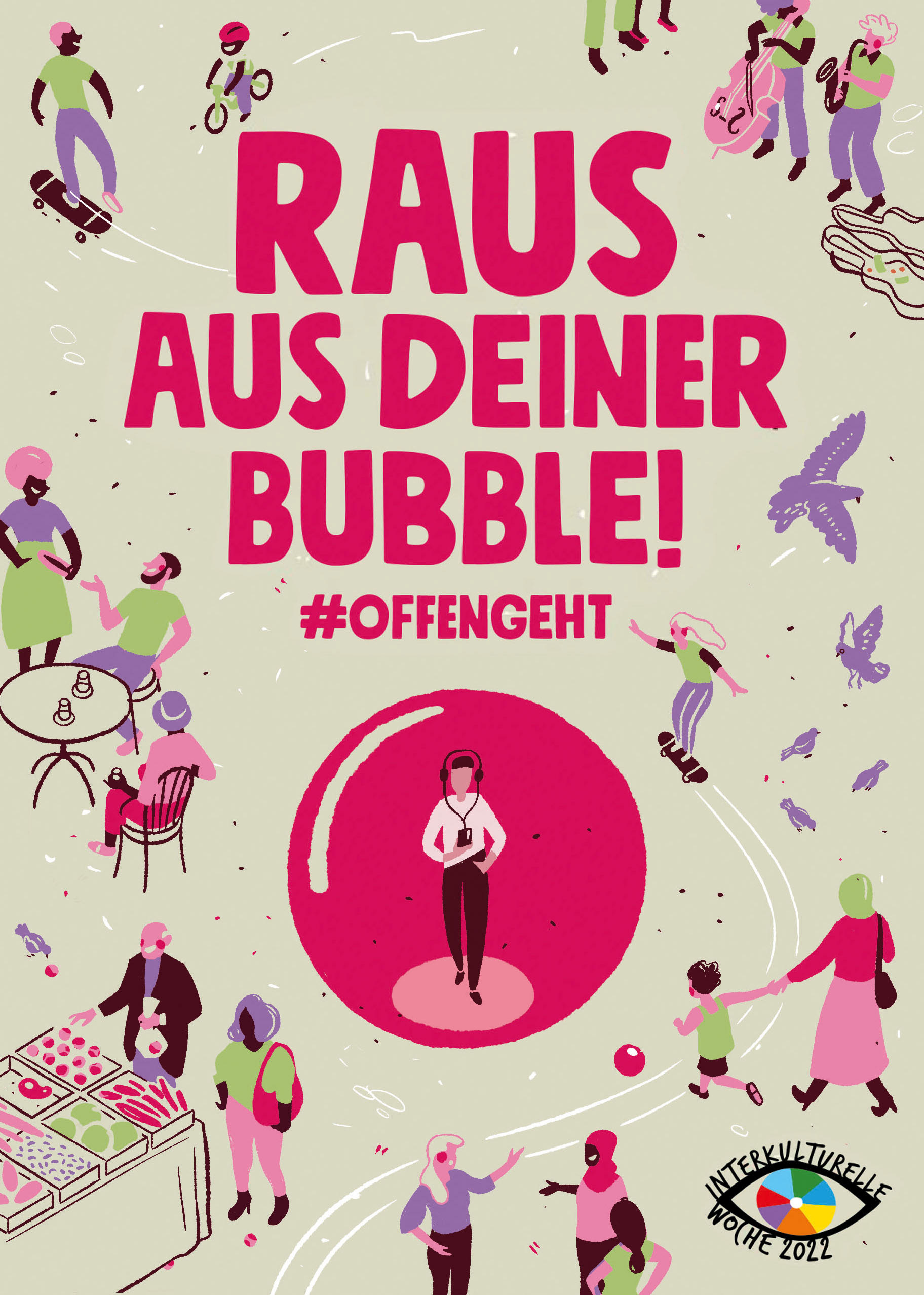 Postcard illustration for the intercultural week "interkulturelle Woche" 2022 in Berlin.